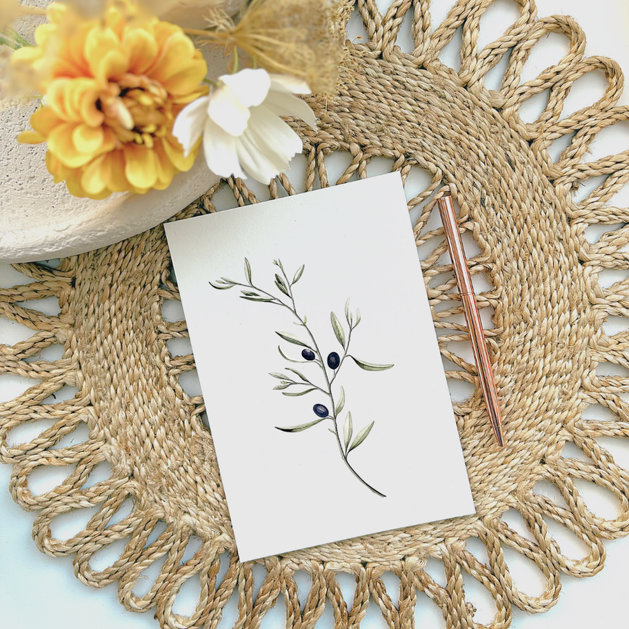 Handgeschilderde aquarel van een olijftak.